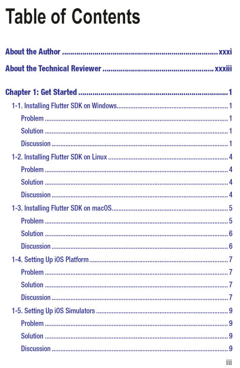 Take advantage of this comprehensive reference to solving common problems when developing with Flutter. Along with an introduction to the basic concepts of Flutter development, the recipes in this book cover all important aspects of this emerging technology, including development, testing, debugging, performance tuning, app publishing, and continuous integration.