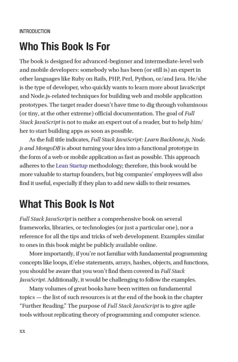 Learn agile JavaScript web development using the latest cutting-edge front-end and back-end technologies including Node.js, MongoDB, Backbone.js, Parse.com, Heroku, and Microsoft Azure. Using a key project example of a message board app, you will learn the foundations of a typical web application: fetching data, displaying it, and submitting new data. Practical examples of the app build are provided with multiple technologies and all code examples are in full color.