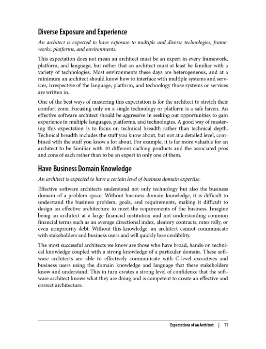 Salary surveys worldwide regularly place software architect in the top 10 best jobs, yet no real guide exists to help developers become architects. Until now. This book provides the first comprehensive overview of software architecture’s many aspects. Aspiring and existing architects alike will examine architectural characteristics, architectural patterns, component determination, diagramming and presenting architecture, evolutionary architecture, and many other topics.