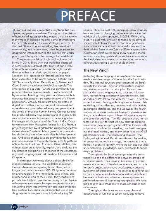 Effective use of today’s vast geographic information (GI) resources requires more than just powerful technology for problem solving. It requires science to help us understand the way the world works, and to help us devise effective procedures for making decisions. Three previous editions have established this text as a defining multidisciplinary treatment of the scientific principles that underpin the use of geographic information technologies for problem solving. This extensively revised and updated edition provides a guide to the enduring scientific principles and information systems that support effective use of today’s GI. It also provides a primer on essential methods for analysis of GI, and the ways in which effective management of GI informs policy and action.