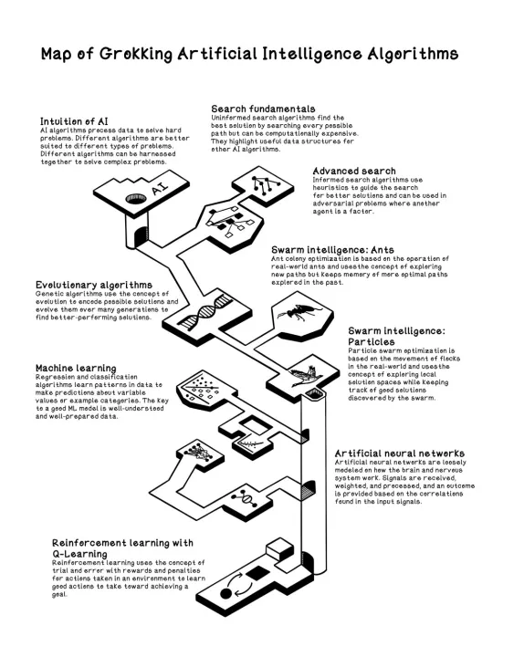 Grokking Artificial Intelligence Algorithms is a fully-illustrated and interactive tutorial guide to the different approaches and algorithms that underpin AI. Written in simple language and with lots of visual references and hands-on examples, readers learn the concepts, terminology, and theory they need to effectively incorporate AI algorithms into their applications. Grokking Artificial Intelligence Algorithms uses simple language, jargon-busting explanations, and hand-drawn diagrams to open up complex algorithms. Don't worry if you aren't a calculus wunderkind; you'll need only the algebra you picked up in math class. Purchase of the print book includes a free eBook in PDF, Kindle, and ePub formats from Manning Publications.