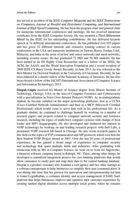 Exponential increase in the use of computers as a means of storing and retrieving security-intensive information, requires placement of adequate security measures to safeguard the entire computing and communication scenario. With the advent of Internet and its underlying technologies, information security aspects are becoming a prime concern towards protecting the networks and the cyber ecosystem from variety of threats, which is illustrated in this handbook. This handbook primarily targets professionals in security, privacy and trust to use and improve the reliability of businesses in a distributed manner, as well as computer scientists and software developers, who are seeking to carry out research and develop software in information and cyber security. Researchers and advanced-level students in computer science will also benefit from this reference.