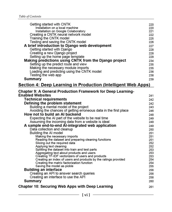 Starting with the fundamentals of machine learning, you'll focus on DL and the basics of neural networks, including common variants such as convolutional neural networks (CNNs). You'll learn how to integrate them into websites with the frontends of different standard web tech stacks. The book then helps you gain practical experience of developing a deep learning-enabled web app using Python libraries such as Django and Flask by creating RESTful APIs for custom models. Later, you'll explore how to set up a cloud environment for deep learning-based web deployments on Google Cloud and Amazon Web Services (AWS). Next, you'll learn how to use Microsoft's intelligent Emotion API, which can detect a person's emotions through a picture of their face. You'll also get to grips with deploying real-world websites, in addition to learning how to secure websites using reCAPTCHA and Cloudflare. Finally, you'll use NLP to integrate a voice UX through Dialogflow on your web pages.