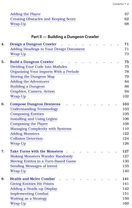 ranging from "Hello, World" to building a full dungeon crawler game.