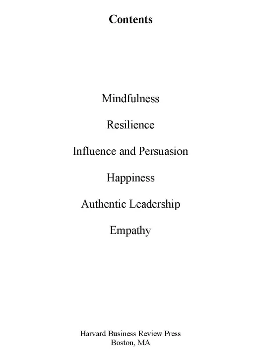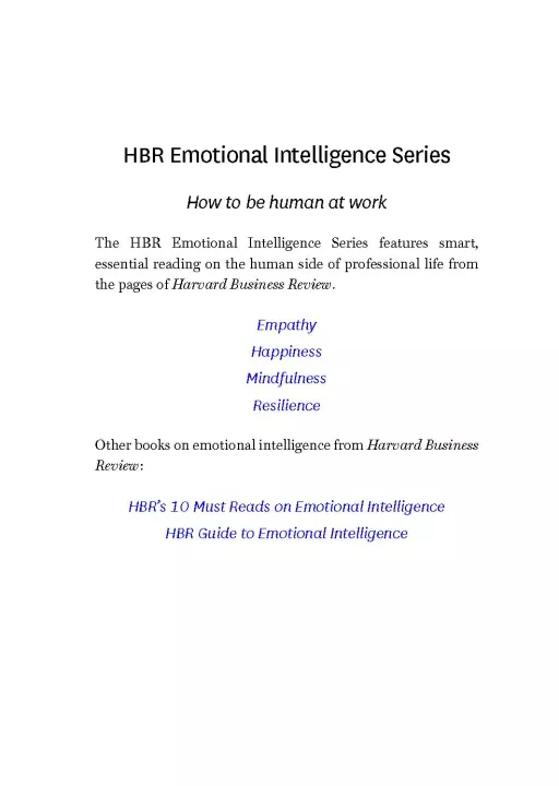 How to be human at work. HBR's Emotional Intelligence Series features smart, essential reading on the human side of professional life from the pages of Harvard Business Review. Each book in the series offers proven research showing how our emotions impact our work lives, practical advice for managing difficult people and situations, and inspiring essays on what it means to tend to our emotional well-being at work. Uplifting and practical, these books describe the social skills that are critical for ambitious professionals to master. The specially priced six-volume set includes, Mindfulness, Resilience, Influence and Persuasion, Authentic Leadership, Happiness, and Empathy.