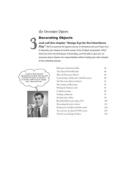 You know you don't want to reinvent the wheel, so you look to design patterns--the lessons learned by those who've faced the same software design problems. With design patterns, you get to take advantage of the best practices and experience of others so that you can spend your time on something more challenging. Something more fun. This book shows you the patterns that matter, when to use them and why, how to apply them to your own designs, and the object-oriented design principles on which the patterns are based.