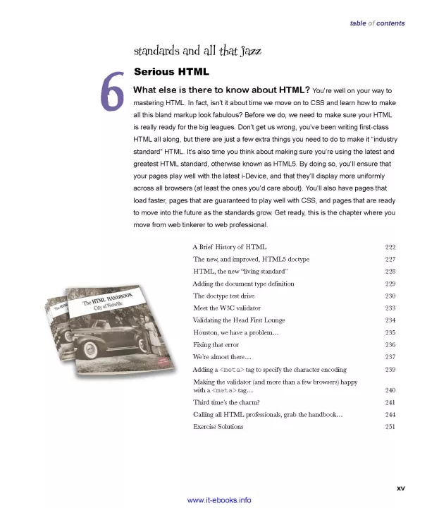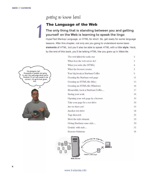 Tired of reading HTML books that only make sense after you're an expert? Then it's about time you picked up Head First HTML and really learned HTML. You want to learn HTML so you can finally create those web pages you've always wanted, so you can communicate more effectively with friends, family, fans, and fanatic customers. You also want to do it right so you can actually maintain and expand your web pages over time so they work in all browsers and mobile devices. Learn the real secrets of creating web pages, and why everything your boss told you about HTML tables is probably wrong (and what to do instead). Most importantly, hold your own with your co-worker (and impress cocktail party guests) when he casually mentions how his HTML is now strict, and his CSS is in an external style sheet.