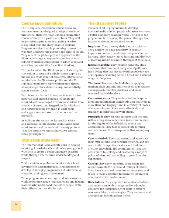 IB Diploma Course Books are essential resource materials designed in cooperation with the IB to provide students with extra support through their IB studies. Course Books provide advice and guidance on specific course assessment requirements, mirroring the IB philosophy and providing opportunities for critical thinking