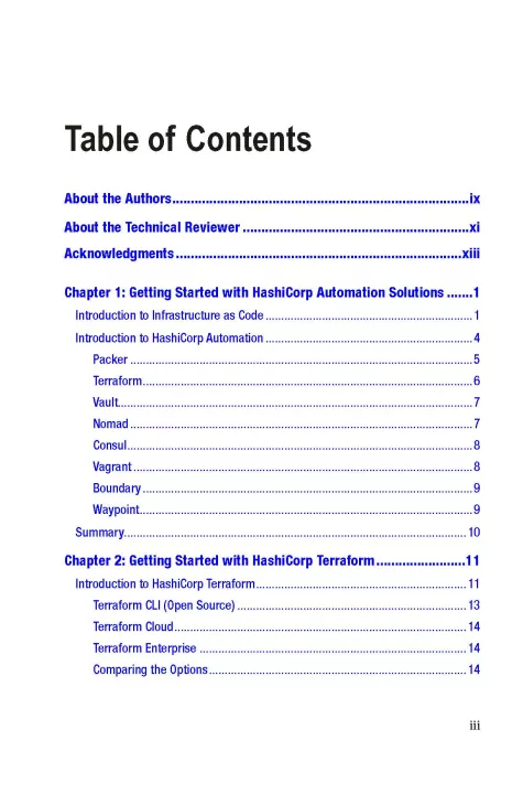 Discover the methodologies and best practices for getting started with HashiCorp tools, including Terraform, Vault, and Packer. The book begins with an introduction to the infrastructure-as-code concept while establishing the need for automation and management technologies. You’ll go over hands-on deployment, configuration, and best practices for Terraform, Packer, Vault, Nomad, and Consul. You’ll then delve deeper into developing automation code using Terraform for automating AWS/Azure/GCP public cloud tasks; advanced topics include leveraging Vault for secrets management and Packer for image management.