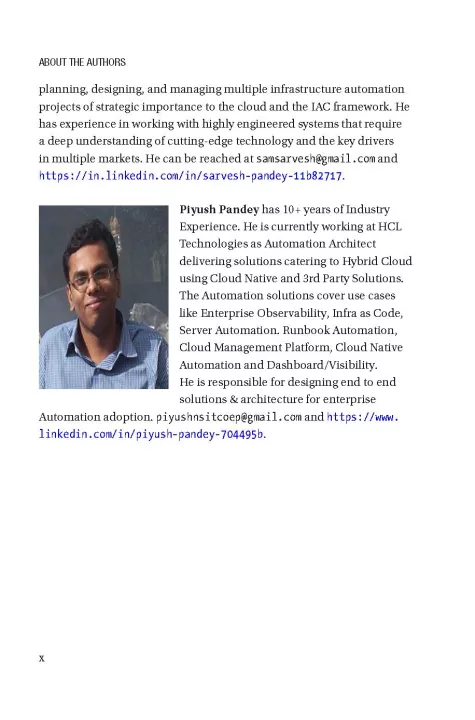 Along the way you will also look at Nomad and Consul for managing application orchestration along with network interconnectivity. In each chapter you will cover automated infrastructure and application deployment on the VM/container base ecosystem. The book provides sample code and best-practice guidance for developers and architects to look at infrastructure-as-code adoption from a holistic viewpoint.