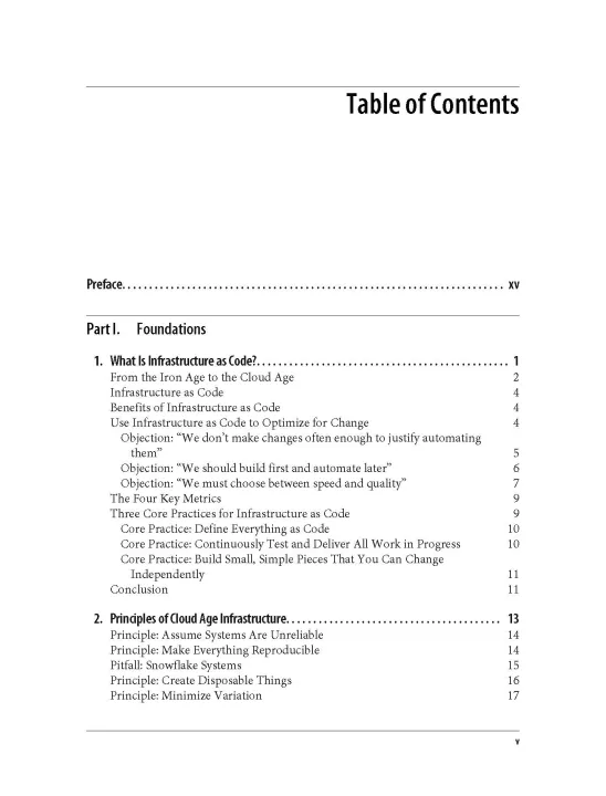 Six years ago, Infrastructure as Code was a new concept. Today, as even banks and other conservative organizations plan moves to the cloud, development teams for companies worldwide are attempting to build large infrastructure codebases. With this practical book, Kief Morris of ThoughtWorks shows you how to effectively use principles, practices, and patterns pioneered by DevOps teams to manage cloud-age infrastructure.