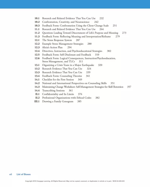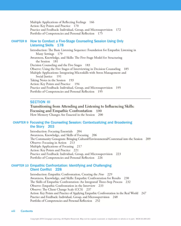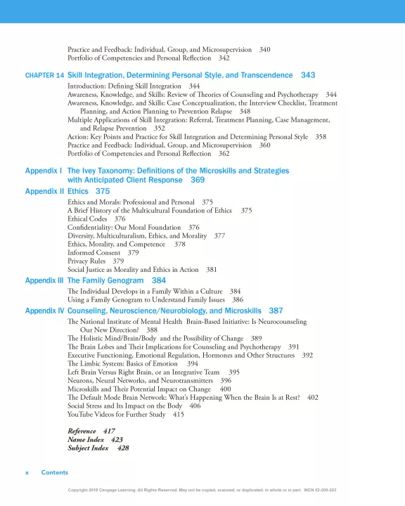 Over 500 data-based studies and years of field testing attest to the effectiveness of the microskills model in INTENTIONAL INTERVIEWING AND COUNSELING: FACILITATING CLIENT DEVELOPMENT IN A MULTICULTURAL SOCIETY, 9th Edition. This hallmark text enables students of many backgrounds to master basic skills in a step-by-step fashion, empowering them to use listening and influencing skills as they conduct full interviews. Students are challenged to re-evaluate their behaviors and perceptions, thereby gaining insight about themselves, their strengths, and areas where they can develop further. After finishing the text, students will have the ability to adapt their skills to address individual and multicultural uniqueness, conduct interviews using different theoretical approaches, and be well on their way to developing a personalized style and theory of interviewing and counseling. Neuroscience and neurobiology, and their applications to counseling, are clearly outlined throughout.