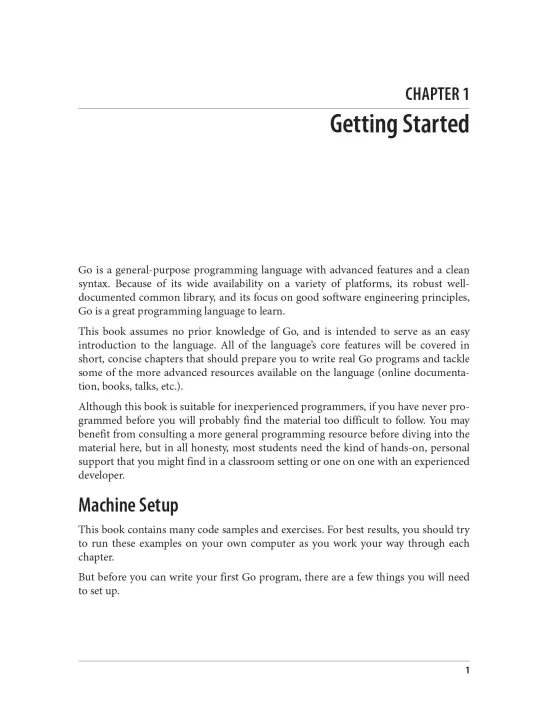 Go is a general-purpose programming language with a clean syntax and advanced features, including concurrency. This book provides the one-on-one support you need to get started with the language, with short, easily digestible chapters that build on one another. By the time you finish this book, not only will you be able to write real Go programs, youll be ready to tackle advanced techniques.