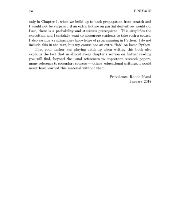 Each chapter includes a programming project, exercises, and references for further reading. An early chapter is devoted to Tensorflow and its interface with Python, the widely used programming language. Familiarity with linear algebra, multivariate calculus, and probability and statistics is required, as is a rudimentary knowledge of programming in Python. The book can be used in both undergraduate and graduate courses; practitioners will find it an essential reference.