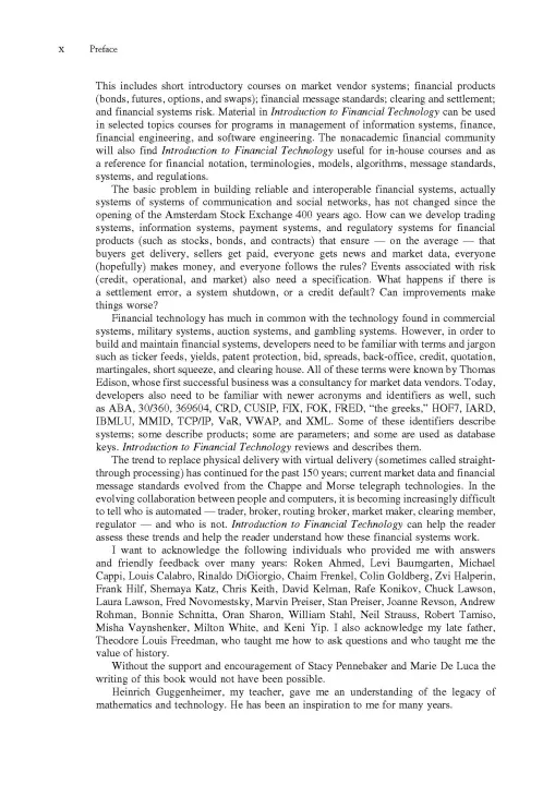 The financial technology environment is a dynamic, high-pressured, fast-paced world in which developing fast and efficient buy-and-sell order processing systems and order executing (clearing and settling) systems is of primary importance. The orders involved come from an ever-changing network of people (traders, brokers, market makers) and technology. To prepare people to succeed in this environment, seasoned financial technology veteran Roy Freedman presents both the technology and the finance side in this comprehensive overview of this dynamic area. He covers the broad range of topics involved in this industry--including auction theory, databases, networked computer clusters, back-office operations, derivative securities, regulation, compliance, bootstrap statistics, optimization, and risk management--in order to present an in-depth treatment of the current state-of-the-art in financial technology. Each chapter concludes with a list of exercises; a list of references; a list of websites for further information; and case studies. A Powerpoint presentation that outlines each chapter's main points is available in a companion instructor's website, and an online instructor's manual is available. *With amazing clarity, Freedman explains both the technology side and the finance side of financial technology *Accessible to both finance professionals needing to upgrade their technology knowledge and technology specialists needing to upgrade their finance knowledge *PowerPoint slides for each chapter available on the Elsevier textbooks website