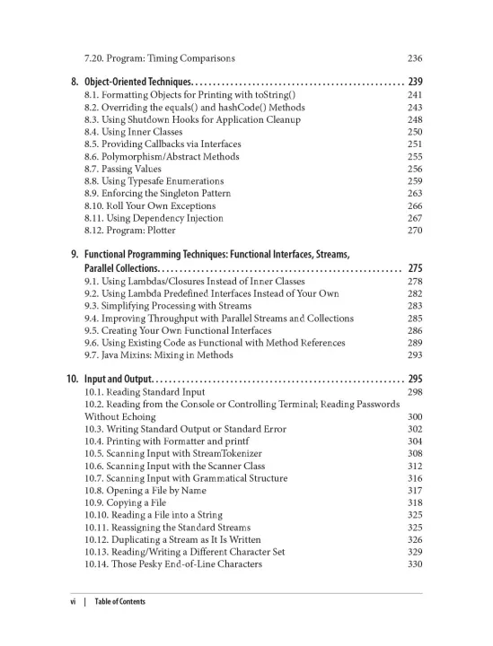 From lambda expressions and JavaFX 8 to new support for network programming and mobile development, Java 8 brings a wealth of changes. This cookbook helps you get up to speed right away with hundreds of hands-on recipes across a broad range of Java topics. You’ll learn useful techniques for everything from debugging and data structures to GUI development and functional programming.Each recipe includes self-contained code solutions that you can freely use, along with a discussion of how and why they work. If you are familiar with Java basics, this cookbook will bolster your knowledge of the language in general and Java 8’s main APIs in particular.Recipes include:Methods for compiling, running, and debuggingManipulating, comparing, and rearranging textRegular expressions for string- and pattern-matchingHandling numbers, dates, and timesStructuring data with collections, arrays, and other typesObject-oriented and functional programming techniquesDirectory and filesystem operationsWorking with graphics, audio, and videoGUI development, including JavaFX and handlersNetwork programming on both client and serverDatabase access, using JPA, Hibernate, and JDBCProcessing JSON and XML for data storageMultithreading and concurrency