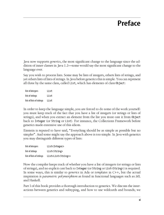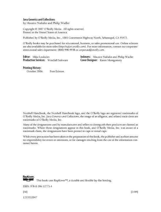 This comprehensive guide shows you how to master the most important changes to Java since it was first released. Generics and the greatly expanded collection libraries have tremendously increased the power of Java 5 and Java 6. But they have also confused many developers who haven't known how to take advantage of these new features. Java Generics and Collections covers everything from the most basic uses of generics to the strangest corner cases. It teaches you everything you need to know about the collections libraries, so you'll always know which collection is appropriate for any given task, and how to use it. Topics covered include:Fundamentals of generics: type parameters and generic methods Other new features: boxing and unboxing, foreach loops, varargs Subtyping and wildcards Evolution not revolution: generic libraries with legacy clients and generic clients with legacy libraries Generics and reflection Design patterns for generics Sets, Queues, Lists, Maps, and their implementations Concurrent programming and thread safety with collections Performance implications of different collections Generics and the new collection libraries they inspired take Java to a new level. If you want to take your software development practice to a new level, this book is essential reading. Philip Wadler is Professor of Theoretical Computer Science at the University of Edinburgh, where his research focuses on the design of programming languages. He is a co-designer of GJ, work that became the basis for generics in Sun's Java 5.0.Maurice Naftalin is Technical Director at Morningside Light Ltd., a software consultancy in the United Kingdom. He has most recently served as an architect and mentor at NSB Retail Systems plc, and as the leader of the client development team of a major UK government social service system. "A brilliant exposition of generics. By far the best book on the topic, it provides a crystal clear tutorial that starts with the basics and ends leaving the reader with a deep understanding of both the use and design of generics." Gilad Bracha, Java Generics Lead, Sun Microsystems