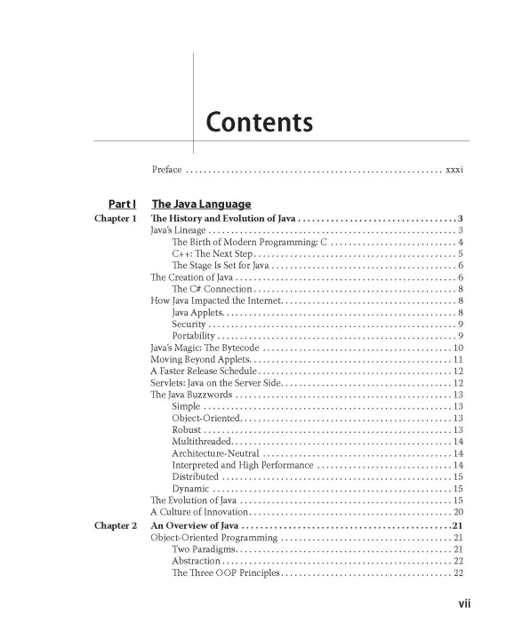 -Data types, variables, arrays, and operators-Control statements-Classes, objects, and methods-Method overloading and overriding-Inheritance-Local variable type inference-Interfaces and packages-Exception handling-Multithreaded programming-Enumerations, autoboxing, and annotations-The I/O classes-Generics-Lambda expressions-Modules-String handling-The Collections Framework-Networking-Event handling-AWT-Swing -The Concurrent API-The Stream API-Regular expressions-JavaBeans-Servlets-Much, much more