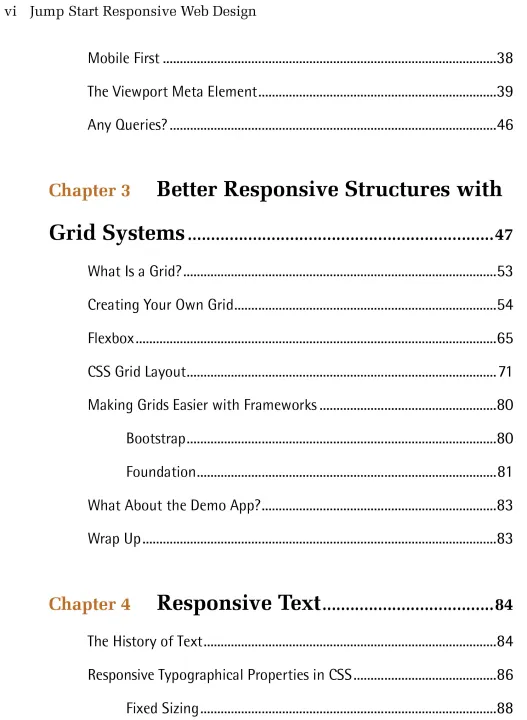 Fortunately, by using responsive web design techniques, you can use one set of HTML, CSS and JavaScript, and display appropriate elements in an appropriate way to suit each platform. In Jump Start Responsive Web Design, you'l learn responsive techniques to make your designs look magnificent on any device, future-proof them, and reduce development time and budget. RWD helps you deal with the very real problem of not knowing where and how your application will be used.