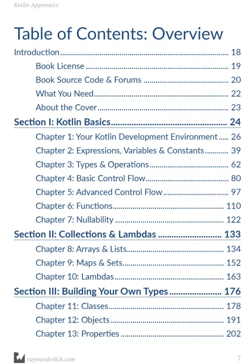 Topics Covered in Kotlin Apprentice