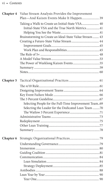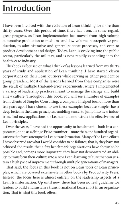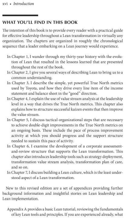 Updated with new information, illustrations, and leadership tools, Leading the Lean Enterprise Transformation, Second Edition describes how the metrics used by Toyota drive every line item in a financial statement in the right direction. Rather than focus on Lean tools and principles, the new edition of this bestselling reference focuses on what may be the least understood and most critical aspect of a Lean transformation: the building of a Lean culture. In addition to new appendices with background information and insightful stories on Lean leadership and implementation, it includes new information on tactical organization practices, strategy deployment, and Lean culture. An inductee to IndustryWeek's Hall of Fame, George Koenigsaecker illustrates successful strategies and valuable lessons learned with case histories of U.S. leaders who have been instrumental in bringing Lean to the forefront. He explains the use of value stream analysis at the leadership level and describes how to structure kaizen events that can improve the value stream. Organized in the chronological sequence that a leader embarking on a Lean journey would experience, the book discusses the methods used by the author during the Hon Company’s successful Lean conversion, which doubled productivity, tripled revenues, and led IndustryWeek to recognize Hon as one of the "World’s 100 Best Managed Firms." The book not only introduces powerful leadership tools—including strategy deployment, transformation value stream analysis, and transformation plan of care—but also arms potential change agents with the soft skills needed to define, develop, and communicate their vision. Detailing the steps required to sustain improvements, it supplies time-tested guidance for effective leadership throughout a Lean transformation in any organization.