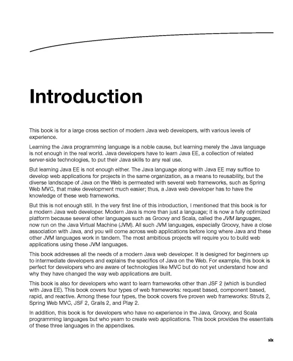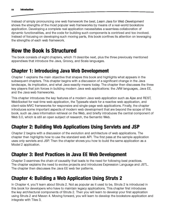 Web development is still one of todays most popular, active, and important programming and development activities. From a single web page to an e-commerce-enabled web site to a fully-fledged web application, the Java programming language and its frameworks allow you great flexibility and productivity for your web application development. Learn Java for Web Development teaches web developers who are new to Java key skills, Java-based languages, and frameworks to build simple or complex web sites and applications. As soon as you pick up this book, Vishal Laykas experience guides you on a very practical learning and building journey. What you’ll learn - How to build your first Java-based web applications with servlets and JSPs - How to apply best practices to web application development - How to build web applications with JSF 2 - How to build web applications with the Struts2 framework - How to build web applications with the Spring 3 Web MVC framework - How to build web applications with Grails and Play 2 - How to debug and deploy your web application along the way