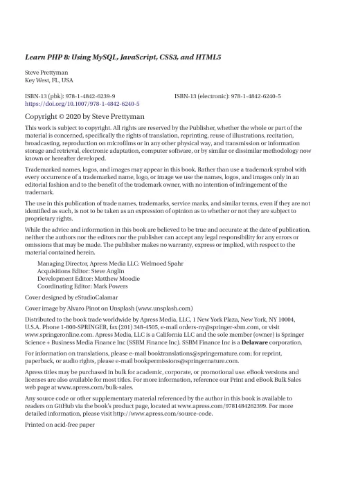 Write solid, secure, object-oriented code in the new PHP 8. In this book you will create a complete three-tier application using a natural process of building and testing modules within each tier. This practical approach teaches you about app development and introduces PHP features when they are actually needed rather than providing you with abstract theory and contrived examples.