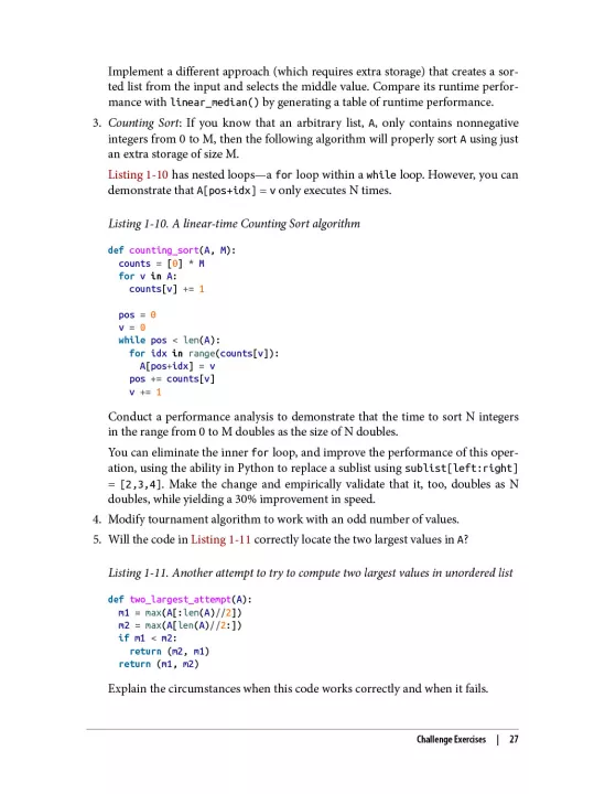 Each chapter builds on earlier chapters through eye-catching visuals and a steady rollout of essential concepts, including an algorithm analysis to classify the performance of every algorithm presented in the book. At the end of each chapter, you’ll get to apply what you’ve learned to a novel challenge problem—simulating the experience you might find in a technical code interview.