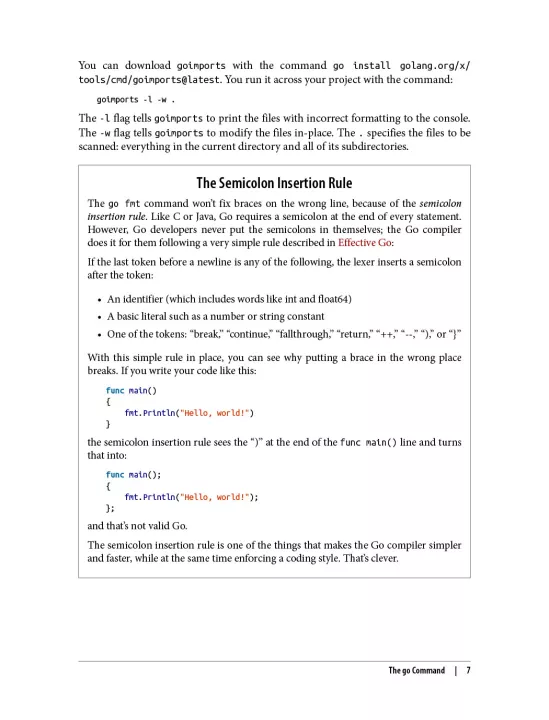 Experience is assumed with the tools of the developer trade, such as version control (preferably Git) and IDEs. Readers should be familiar with basic computer science concepts like concurrency and abstraction, as the book explains how they work in Go. Some of the code examples are downloadable from GitHub and dozens more can be tried out online on The Go Playground. While an internet connection isn’t required, it is helpful when reviewing executable examples. Since Go is often used to build and call HTTP servers, some examples assume familiarity with basic HTTP concepts.