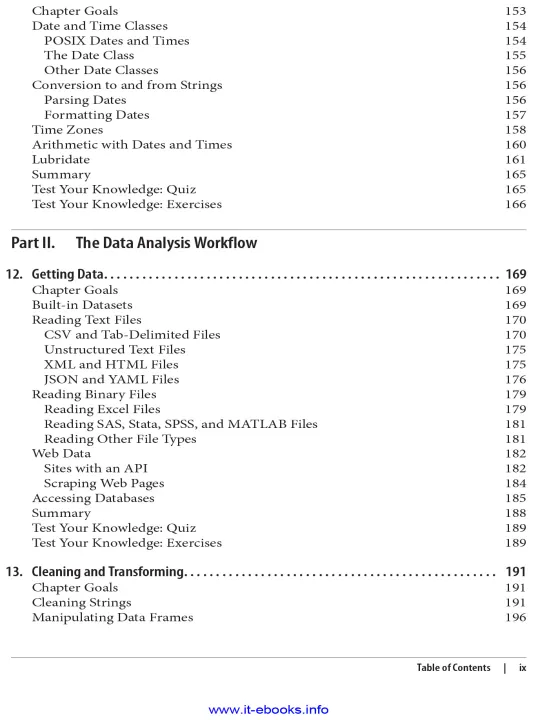 half of Learning R shows you real data analysis in action by covering