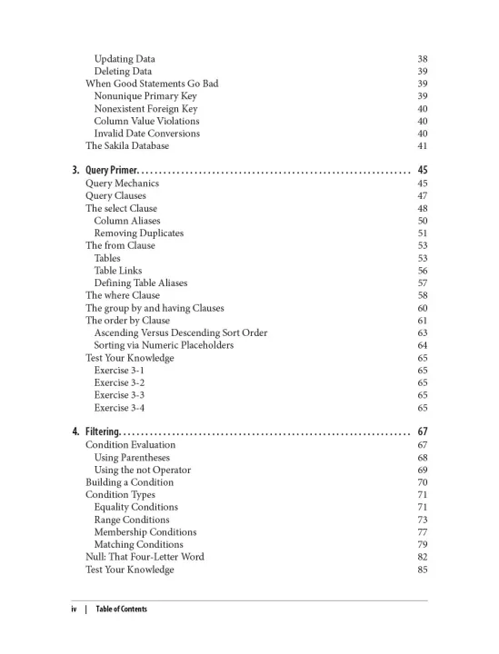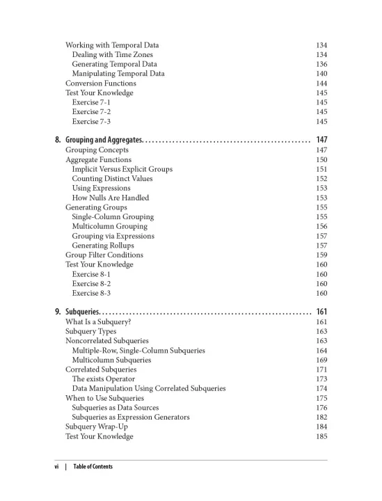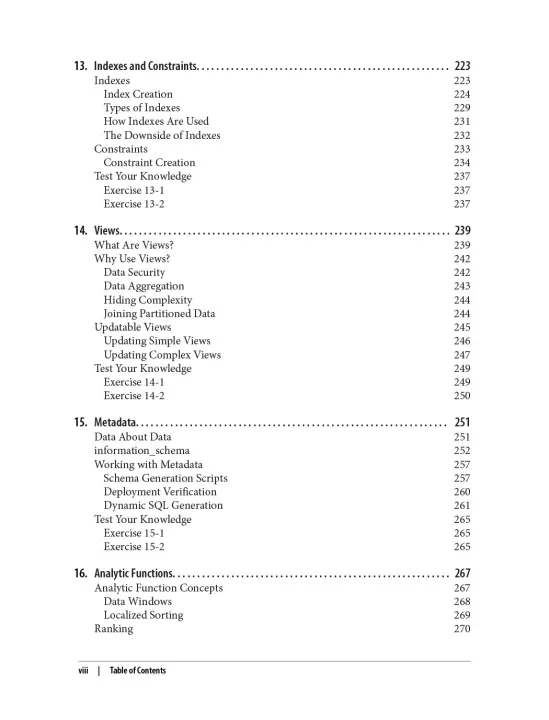 Each chapter presents a self-contained lesson on a key SQL concept or technique using numerous illustrations and annotated examples. Exercises at the end of each chapter let you practice the skills you learn. Knowledge of SQL is a must for interacting with data. With Learning SQL, you'll quickly learn how to put the power and flexibility of this language to work.