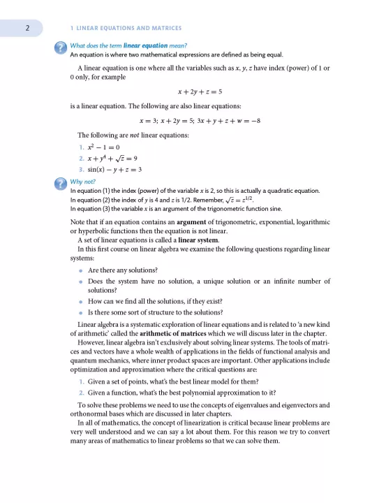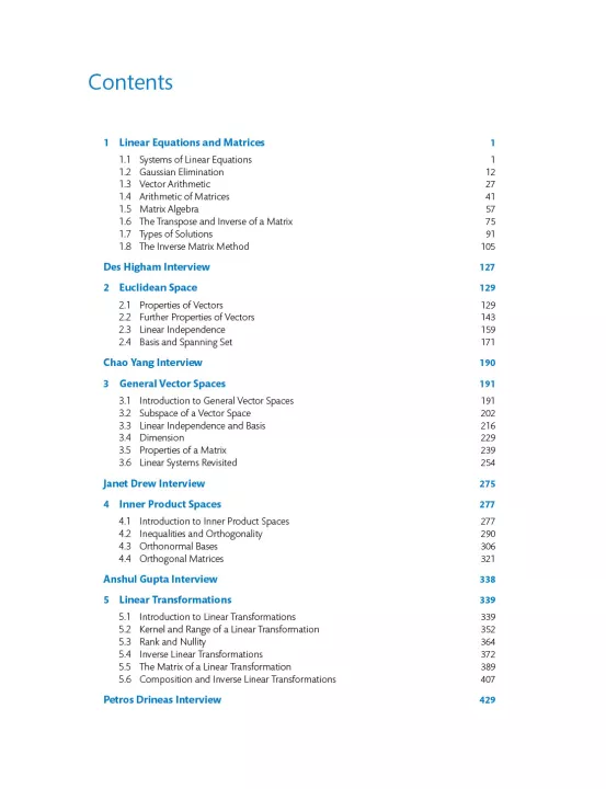 The dynamic and engaging style of the book includes frequent question and answer sections to test the reader's understanding of the methods introduced, rather than requiring rote learning. When first encountered, the subject can appear abstract and students will sometimes struggle to see its relevance; to counter this, the book also contains interviews with key people who use linear algebra in practice, in both professional and academic life. It will appeal to undergraduate students in mathematics, the physical sciences and engineering.