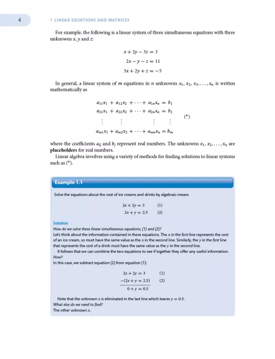 The strength of the text is in the large number of examples and the step-by-step explanation of each topic as it is introduced. It is compiled in a way that allows distance learning, with explicit solutions to set problems freely available online. The miscellaneous exercises at the end of each chapter comprise questions from past exam papers from various universities, helping to reinforce the reader's confidence. Also included, generally at the beginning of sections, are short historical biographies of the leading players in the field of linear algebra to provide context for the topics covered.