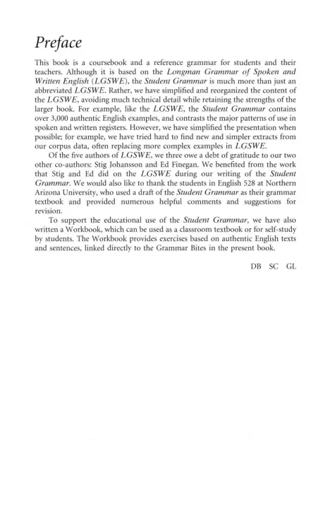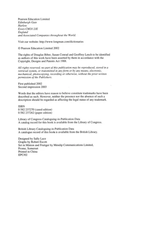 * Examines patterns of use in the news, fiction and academic English * Takes grammar and vocabulary together and looks at how they interact * Is based on the analysis of 40-million words of British and American, written and spoken corpus text * Uses over 3000 examples of real, corpus English to illustrate the points * Uses frequency tables and graphs to make the new findings of this grammar clear