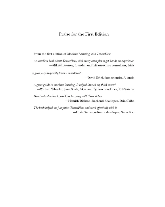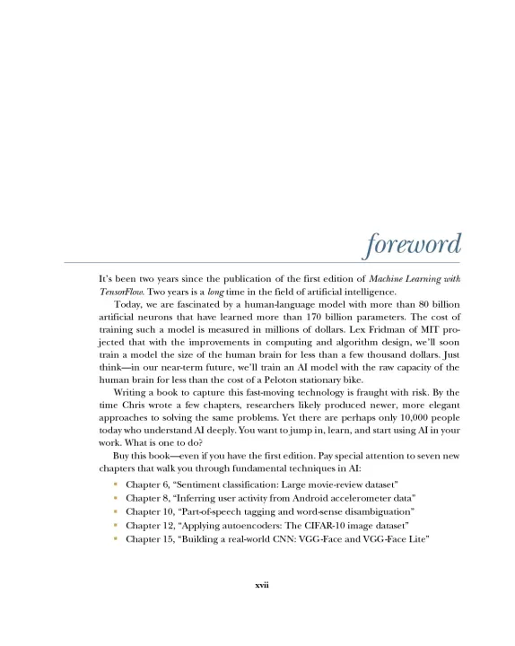 Updated with new code, new projects, and new chapters, Machine Learning with TensorFlow, Second Edition gives readers a solid foundation in machine-learning concepts and the TensorFlow library. Written by NASA JPL Deputy CTO and Principal Data Scientist Chris Mattmann, all examples are accompanied by downloadable Jupyter Notebooks for a hands-on experience coding TensorFlow with Python. New and revised content expands coverage of core machine learning algorithms, and advancements in neural networks such as VGG-Face facial identification classifiers and deep speech classifiers.
