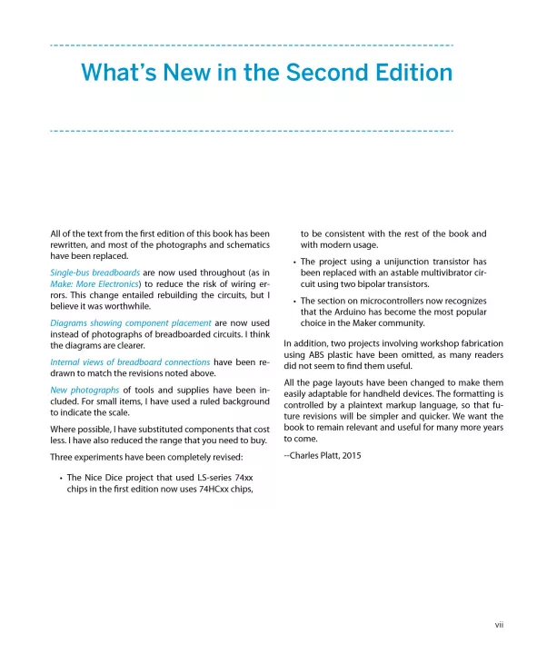 The first edition of Make: Electronics established a new benchmark for introductory texts. This second edition enhances that learning experience.