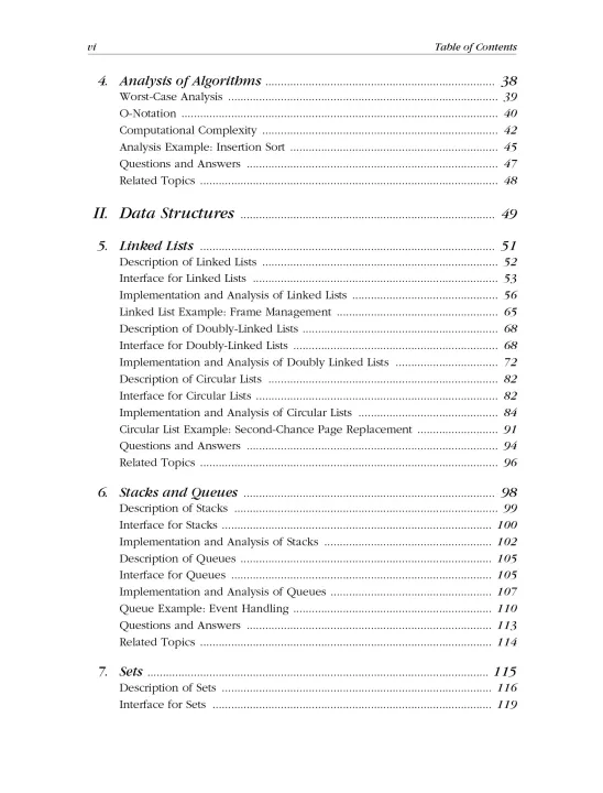 • Data structures (lists, stacks, queues, sets, hash tables, trees, heaps, priority queues, and graphs)