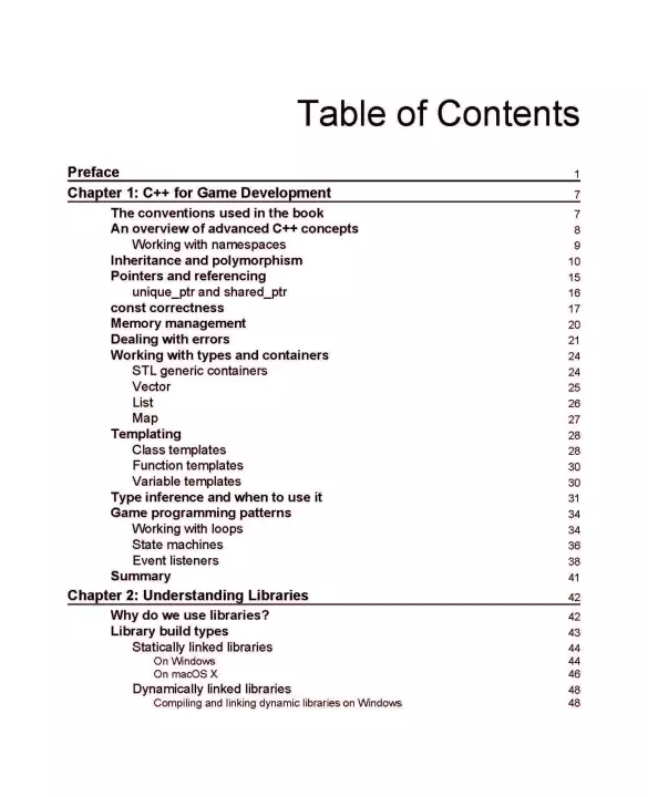 To begin, you will be presented with, an overview of popular development methodologies, and a short guide to updated features of the C++ 17 standard. You will learn how to leverage existing libraries such as OpenGL and the STL (standard library) to build complex systems. Throughout the journey, you will also build a set of C++ 17 compatible libraries that can be reused in your own development projects. In the last half of the book, you will work with demos designed to introduce you to advanced rendering techniques, interactive physics, advanced AI techniques, and even multiplayer game concerns with modern networks.