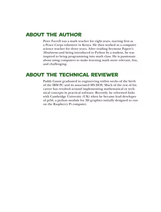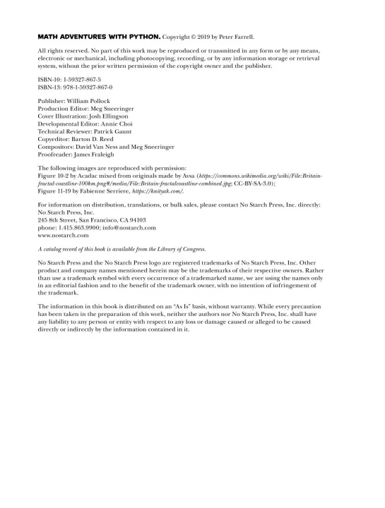 Math Adventures with Python will show you how to harness the power of programming to keep math relevant and fun. With the aid of the Python programming language, you'll learn how to visualize solutions to a range of math problems as you use code to explore key mathematical concepts like algebra, trigonometry, matrices, and cellular automata.