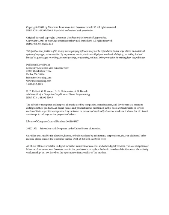 Mathematics for Computer Graphics and Game Programming ( sách gia công bìa mềm )