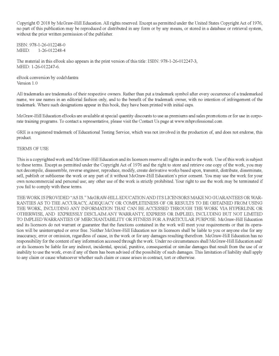 With more than 125 years of experience in education, McGraw-Hill Education is the name you trust to deliver results. This MHE guide will provide you with the intensive practice you need to succeed on the GRE. Inside this book, you will find: