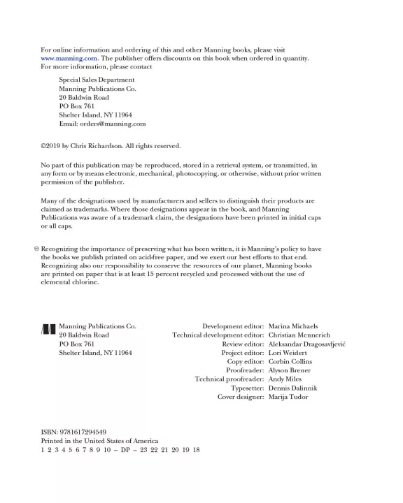 Microservices Patterns teaches enterprise developers and architects how to build applications with the microservice architecture. Rather than simply advocating for the use the microservice architecture, this clearly-written guide takes a balanced, pragmatic approach, exploring both the benefits and drawbacks.