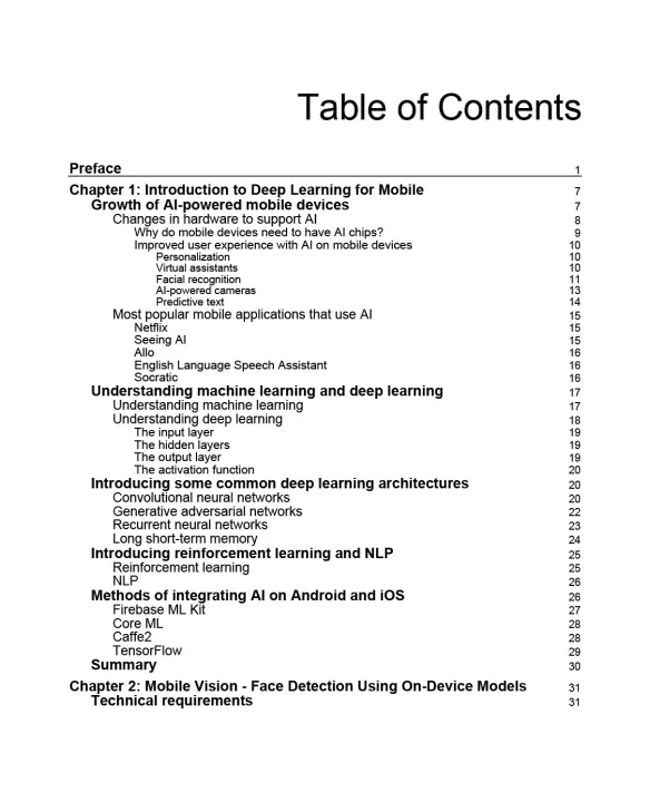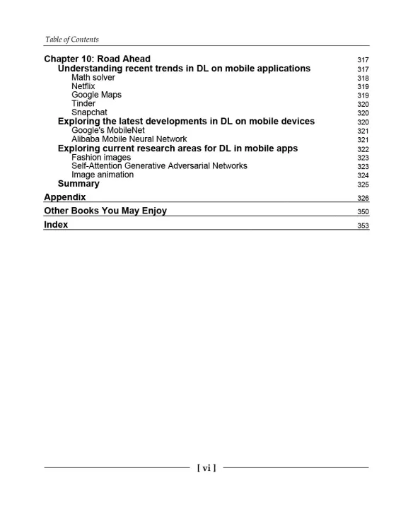 With the help of eight projects, you will learn how to integrate deep learning processes into mobile platforms, iOS, and Android. This will help you to transform deep learning features into robust mobile apps efficiently. You'll get hands-on experience of selecting the right deep learning architectures and optimizing mobile deep learning models while following an application oriented-approach to deep learning on native mobile apps. We will later cover various pre-trained and custom-built deep learning model-based APIs such as machine learning (ML) Kit through Firebase. Further on, the book will take you through examples of creating custom deep learning models with TensorFlow Lite. Each project will demonstrate how to integrate deep learning libraries into your mobile apps, right from preparing the model through to deployment.