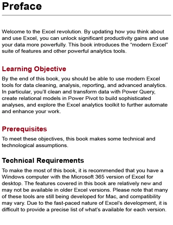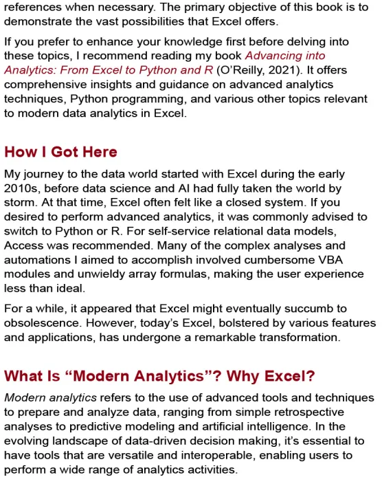If you haven't modernized your data cleaning and reporting processes in Microsoft Excel, you're missing out on big productivity gains. And if you're looking to conduct rigorous data analysis, more can be done in Excel than you think. This practical book serves as an introduction to the modern Excel suite of features along with other powerful tools for analytics.