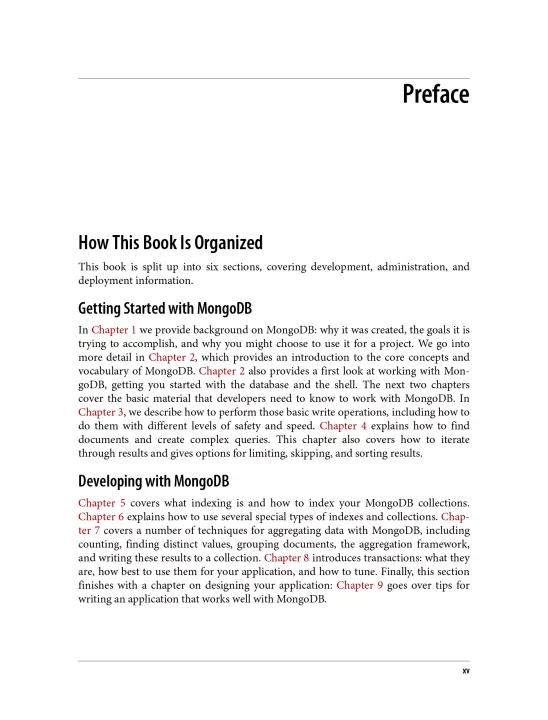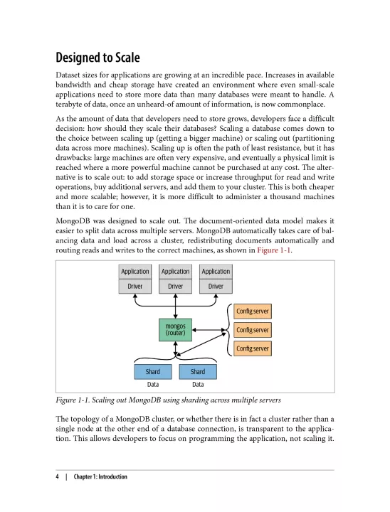 Authors Shannon Bradshaw, Eoin Brazil, and Kristina Chodorow provide guidance for database developers, advanced configuration for system administrators, and use cases for a variety of projects. NoSQL newcomers and experienced MongoDB users will find updates on querying, indexing, aggregation, transactions, replica sets, ops management, sharding and data administration, durability, monitoring, and security.