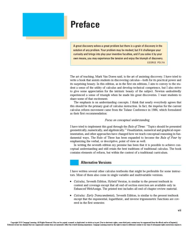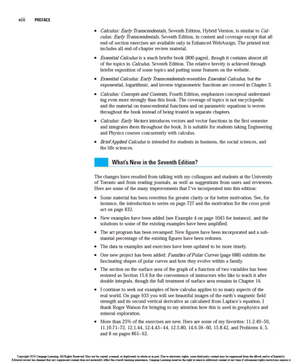 Success in your calculus course starts here! James Stewart's CALCULUS texts are world-wide best-sellers for a reason: they are clear, accurate, and filled with relevant, real-world examples. With MULTIVARIABLE CALCULUS, Seventh Edition, Stewart conveys not only the utility of calculus to help you develop technical competence, but also gives you an appreciation for the intrinsic beauty of the subject. His patient examples and built-in learning aids will help you build your mathematical confidence and achieve your goals in the course!