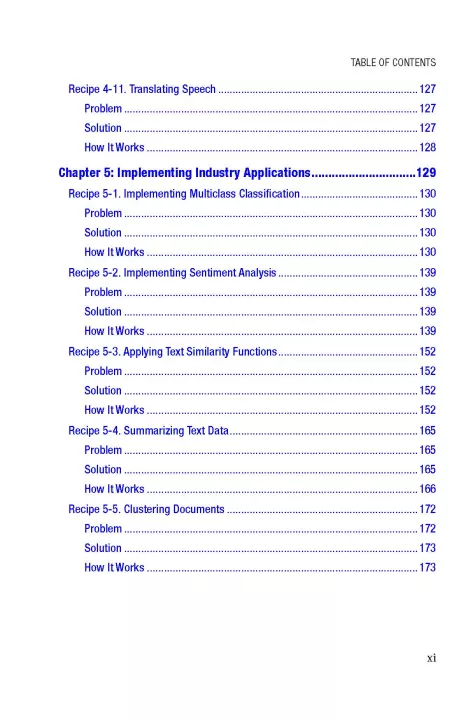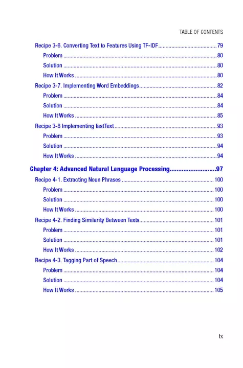 Implement natural language processing applications with Python using a problem-solution approach. This book has numerous coding exercises that will help you to quickly deploy natural language processing techniques, such as text classification, parts of speech identification, topic modeling, text summarization, text generation, entity extraction, and sentiment analysis.