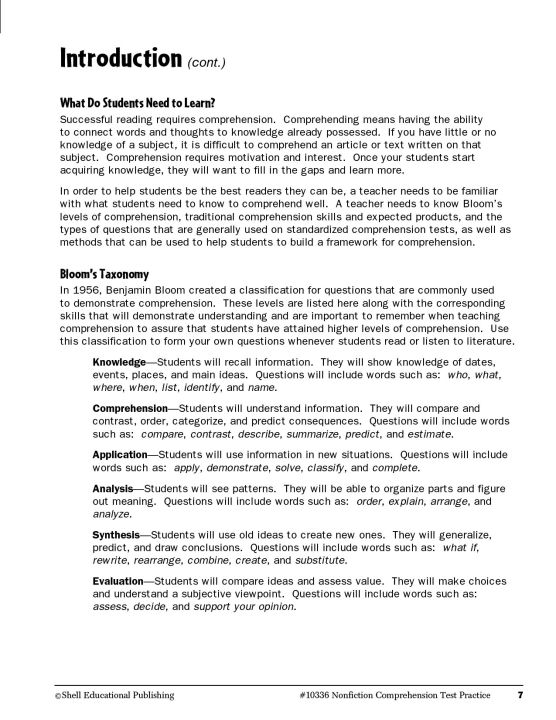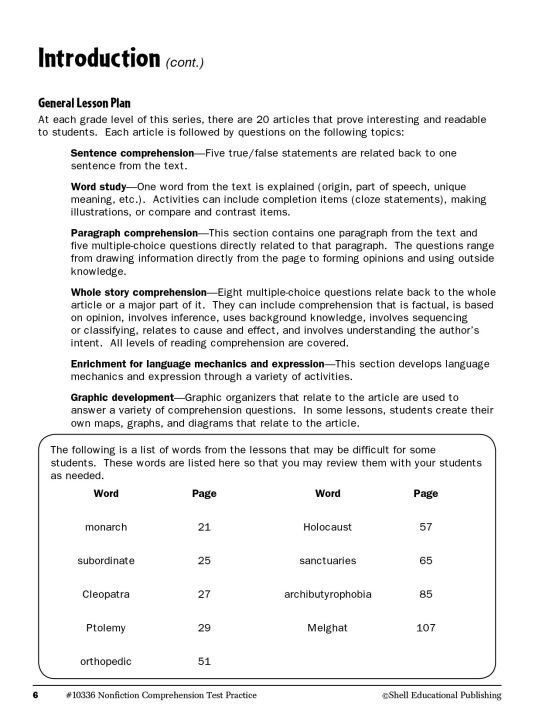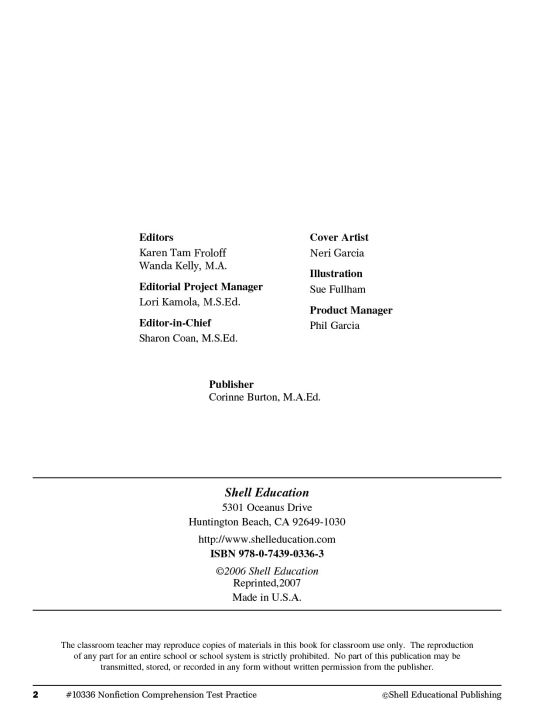 Nonfiction Comprehension Test Practice Level 6 (sách đen trắng) Sách tiếng anh