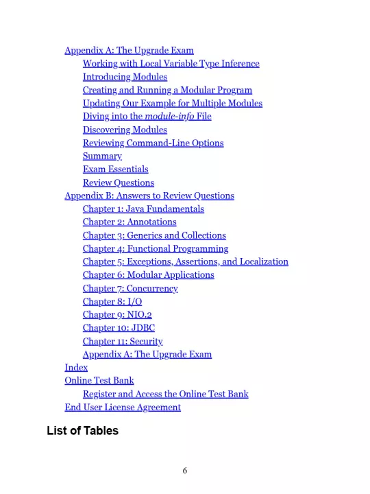 OCP Oracle Certified Professional Java SE 11 Programmer I Study Guide covers 100% of the exam objectives, ensuring that you are thoroughly prepared for this challenging certification exam. This comprehensive, in-depth study guide helps you develop the functional-programming knowledge required to pass the exam and earn certification. All vital topics are covered, including Java building blocks, operators and loops, String and StringBuilder, Array and ArrayList, and more. Included is access to Sybex's superior online interactive learning environment and test bank—containing self-assessment tests, chapter tests, bonus practice exam questions, electronic flashcards, and a searchable glossary of important terms.