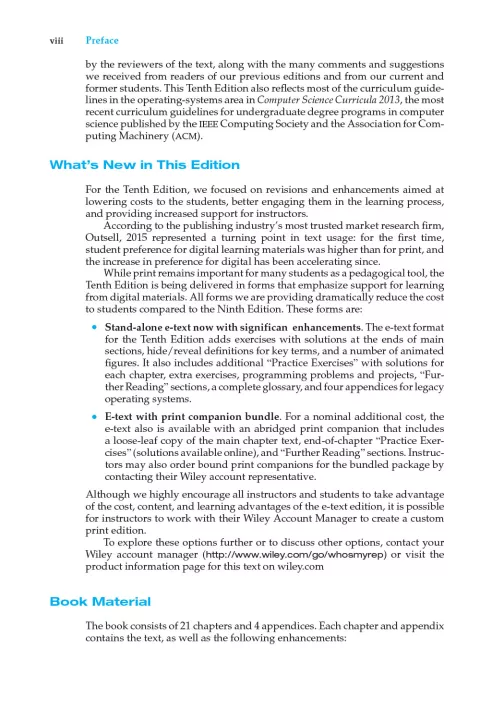 The tenth edition of Operating System Concepts has been revised to keep it fresh and up-to-date with contemporary examples of how operating systems function, as well as enhanced interactive elements to improve learning and the student’s experience with the material. It combines instruction on concepts with real-world applications so that students can understand the practical usage of the content. End-of-chapter problems, exercises, review questions, and programming exercises help to further reinforce important concepts. New interactive self-assessment problems are provided throughout the text to help students monitor their level of understanding and progress. A Linux virtual machine (including C and Java source code and development tools) allows students to complete programming exercises that help them engage further with the material.